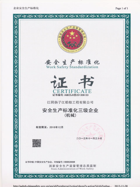Safety standardization level three certificate